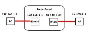 Öncelikle default bir konfigurasyon yapacağız. Bu örneğimizde basit bir ofis networküne sahip olduğumuzu ve mikrotik‘in bu networkün önünde erişim ve filtreleme sağladığını varsayıyoruz.