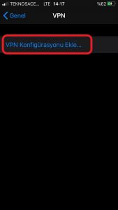 Karşımıza gelen ekranda “VPN Konfigürasyonu Ekle” seçeneğine tıklıyoruz.
