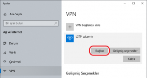 Bilgilerini girip kaydet seçeneğine tıklıyoruz. Oluşturduğumuz vpn bağlantısına gelip bağlan dediğimizde