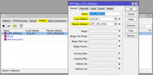 /ppp profile add local-address=10.20.30.1 name=L2TP_PROFILE remote-address=L2TP_VPN_POOL