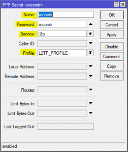 /ppp secret add name=wicomtr password=wicomtr profile=L2TP_PROFILE service=l2tp