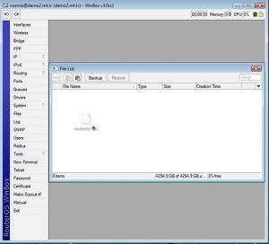 - Mikrotik konsolundaki “Files” menüsüne sürükle bırak şeklinde dosyalarınızı yükleyebilirsiniz.