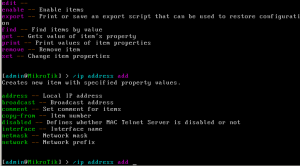 CLI üzerindeki mantıksal önemli bir nokta ise komutların bulunduğunuz path’e göre işletilmesidir. Örnek olarak /ip address komutunu verin. Ardından interface komutunu verme şansınız bulunmayacaktır. Çünki artık siz /ip address dizini altındaki komutları girebilirsiniz. Eğer başka bir dizinden komut girmek isterseniz / işaretini koyarak en üst dizinden komutlar girebilirsiniz. Bulunduğunuz dizindeki komut ve parametreler hakkında bilgi almak için ? işaretini kullanabilirsiniz.